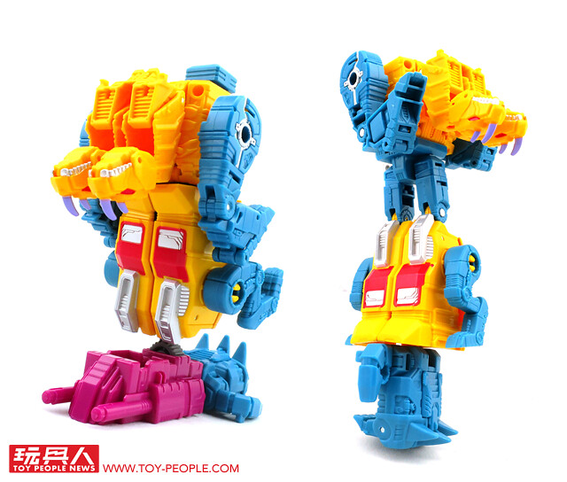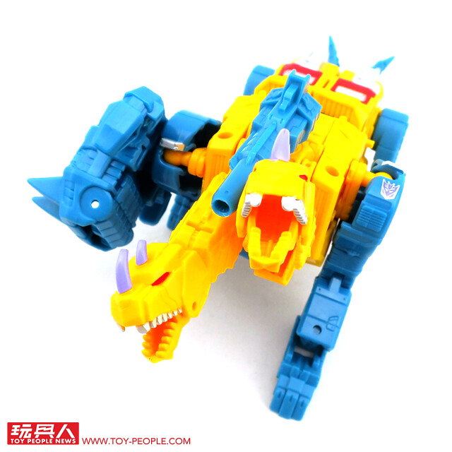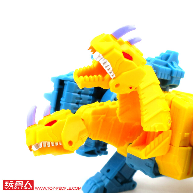 ▼魔怪模式繼承了G1的黃藍配色,不僅擁有雙龍首,連尾部也還原了當年那不協調的雙尾設定。武器和可變形為巨掌的「至尊戰甲」(Prime Armor)均可裝載。