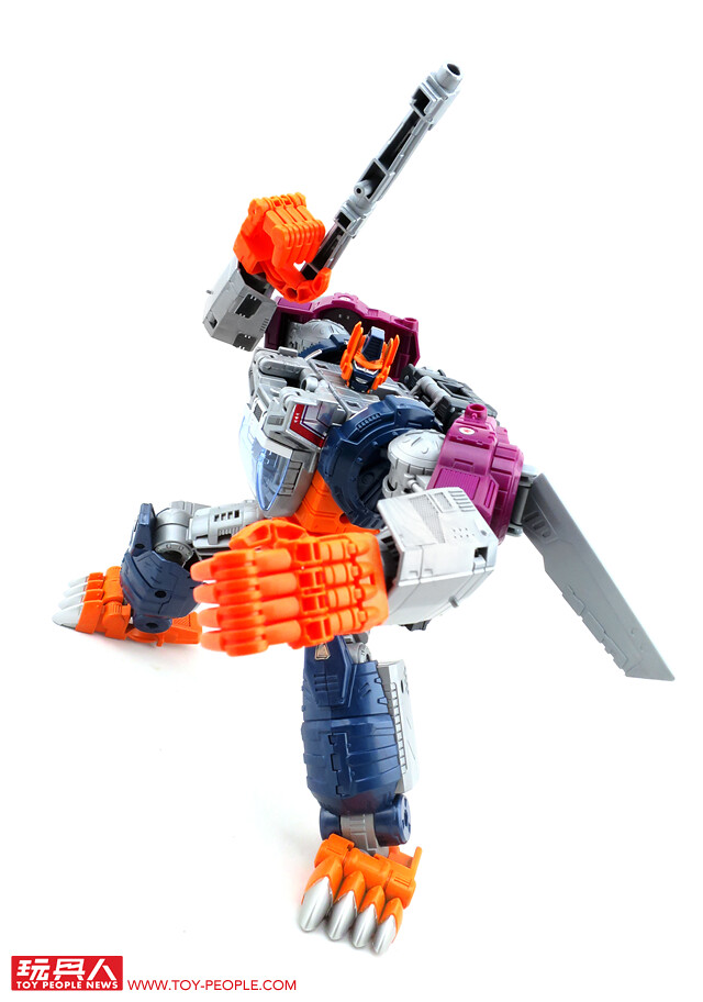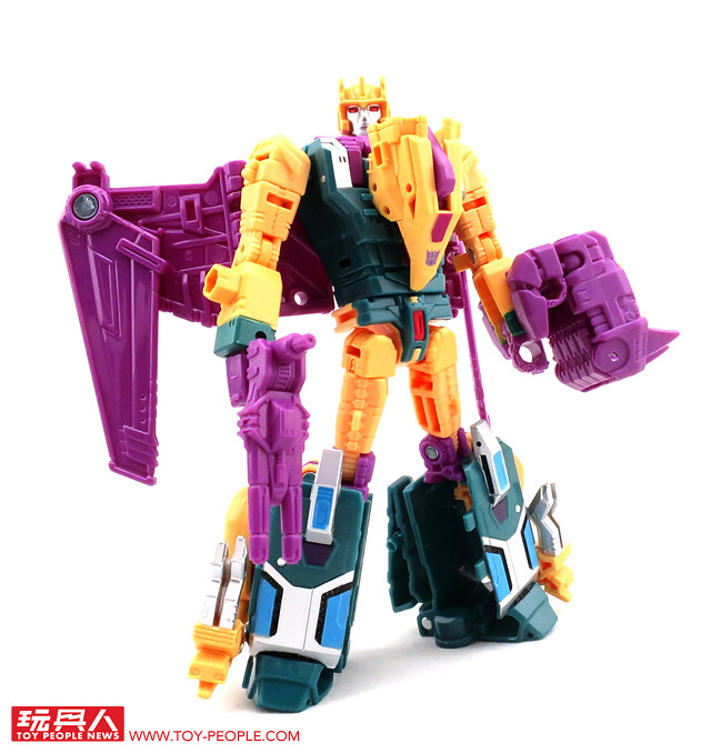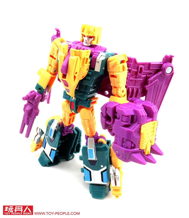 ▼機器人模式,同樣按照G1玩具的設定採用了元祖版的黃綠紫三重配色。
