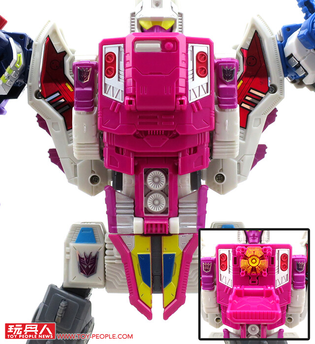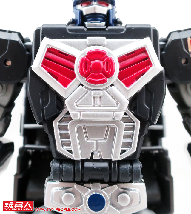 ▼雖然不是獨立的胸甲,但設計師巧妙地利用變形機構模擬出這個外表,除此之外,還能將胸部開啟並容納火種方塊(圖例為Terrorcon Enigma/恐懼金剛之謎)喔!