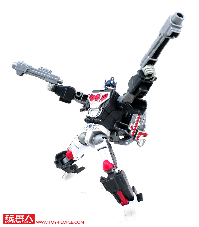 ▼至於元祖玩具本來也能達到的裝甲車模式,這次就因為機構設計的關係而被刪去,不過即使沒有輪胎,我們還是可以模擬出大概的樣子。