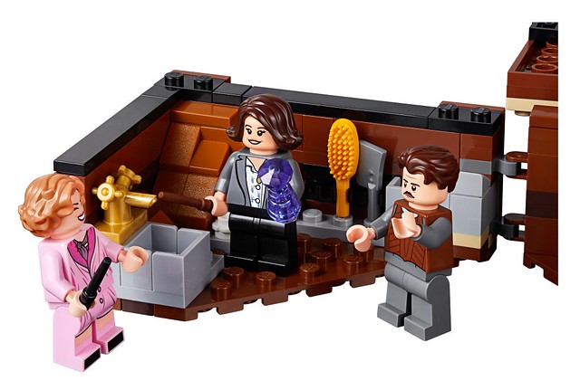 內裝小巧而精緻,大致分出了三個區塊,並用上茶杯、蛋、盆栽....等小配件來點綴,人偶部分則是給好給滿,可以一次收齊紐特、雅各、蒂娜和奎妮,有趣的是雅各還可以戴上頭盔喔~而奎妮的粉紅色服裝真的很漂亮呢!最後就是魔法生物的部分啦~以積木拼搭出的「雷鳥(Thunderbird)」、「兩腳蛇(Occamy)」、「爆角怪(Erumpent)」有著相當程度的還原,玩具人們還喜歡這種造型嗎?另外,有一隻小淘氣絕對會讓大家歡呼的~那就是「玻璃獸(Niffler)」的小人偶!真的超可愛啊~