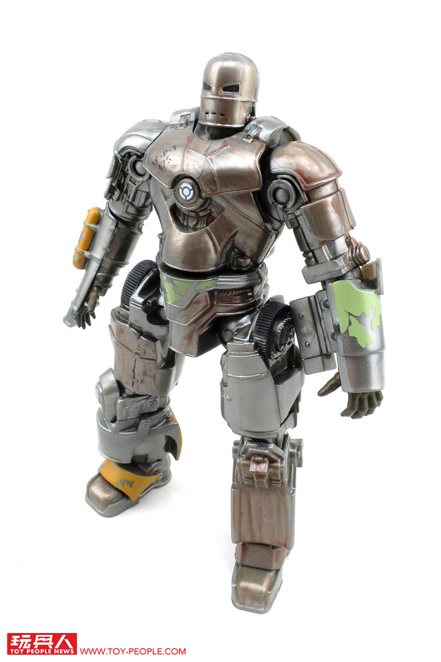 ▼ 雙人同綑包的另一款主角:鋼鐵人Mk I,東尼被十環幫(Ten Rings)囚禁於阿富汗時所研發的第一套鋼鐵衣,受限於戰地,這套盔甲的外表比較像是廢物利用的拼裝機。本次的玩具並非新模,而是來自於2008年的舊版本重塗。是的!又是2008,現在你可以知道這個數字對於漫威工作室的重要性,也不禁為這個重塗的選擇會心一笑啊!