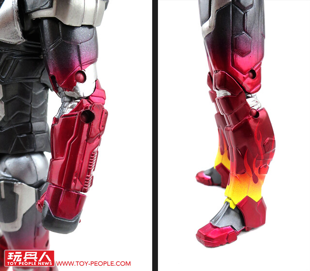 ▼ 下手臂與小腿的漸層塗裝有著相當漂亮的金屬質感,小腿下方的火燄拉花更是一絕。