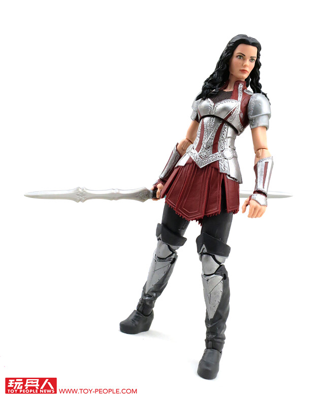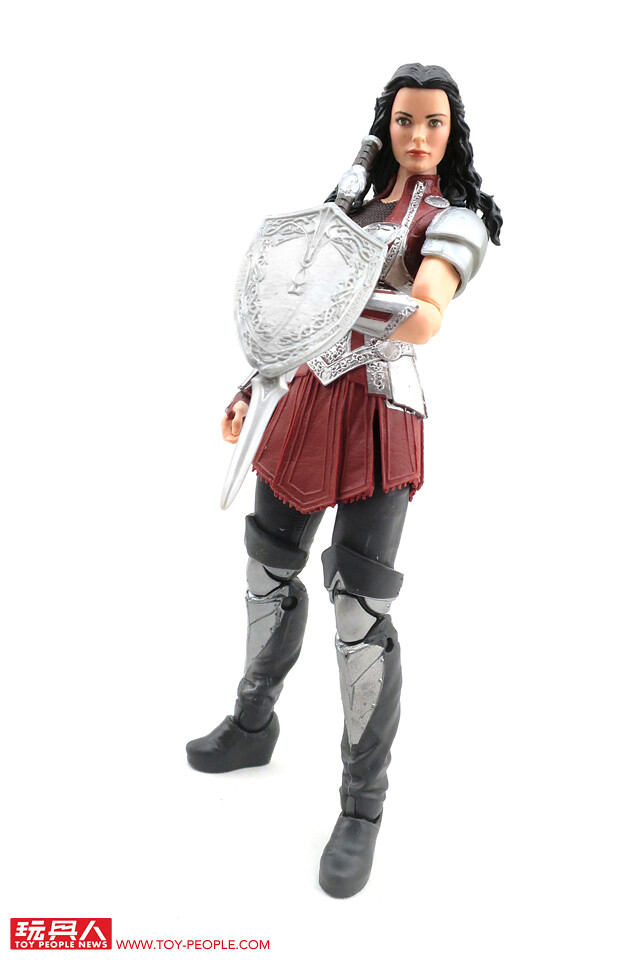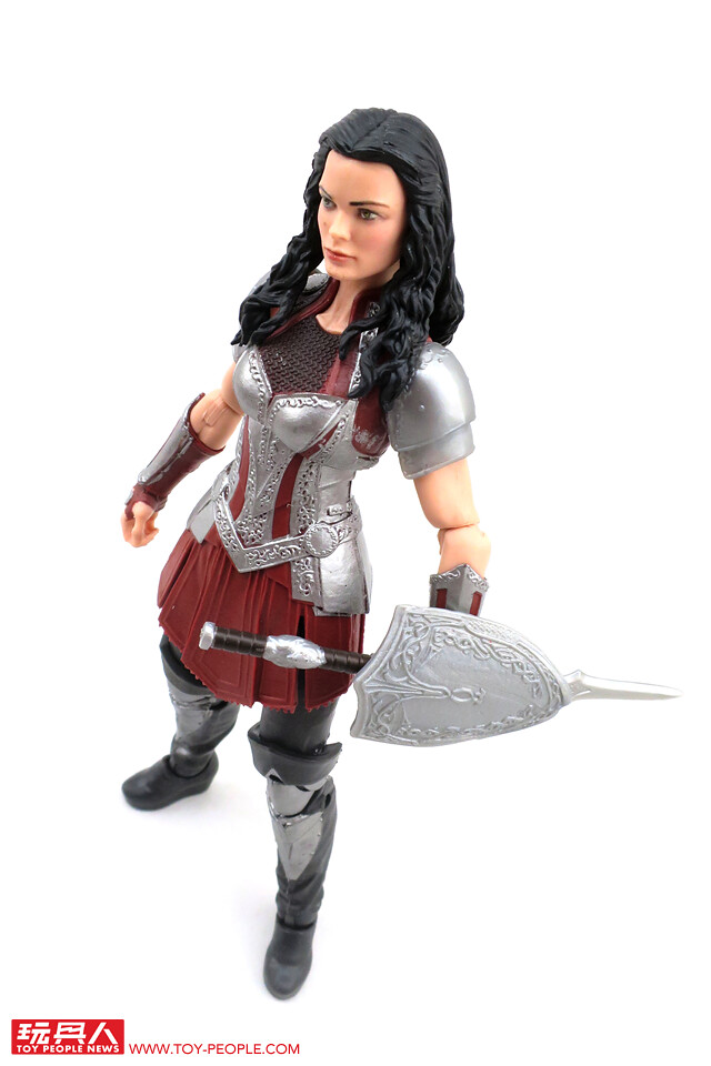 ▼ 希芙,索爾與戰士三人組(Warrior Three)的換帖死黨,手持雙刃劍和銀色的盾牌,是阿斯嘉(Asgard)最強悍的女戰神。人偶造型依其劇中的表現加以還原,重現了紅、銀相間的盔甲與服飾。