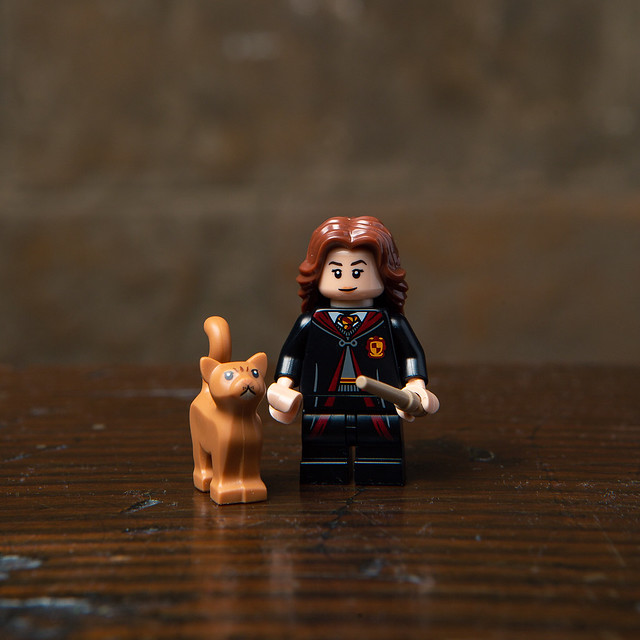 就和哈利、榮恩一樣,妙麗也穿上了葛來分多學院服,並做成女版的款式,除了魔杖外,還有貓咪「歪腿」。