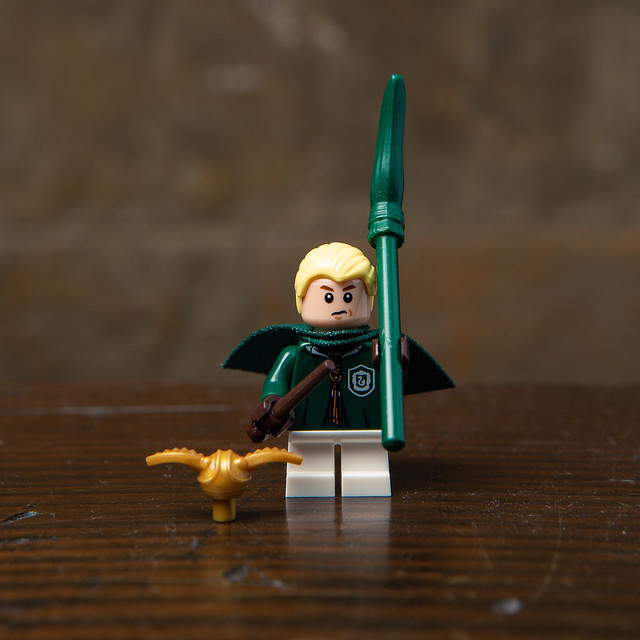 這裡的馬份採用他參加魁地奇比賽的裝扮,果然是一臉中二的跩樣XDD 但綠色掃把是個蠻讚的零件喔~樂高也很好心的給他金探子。