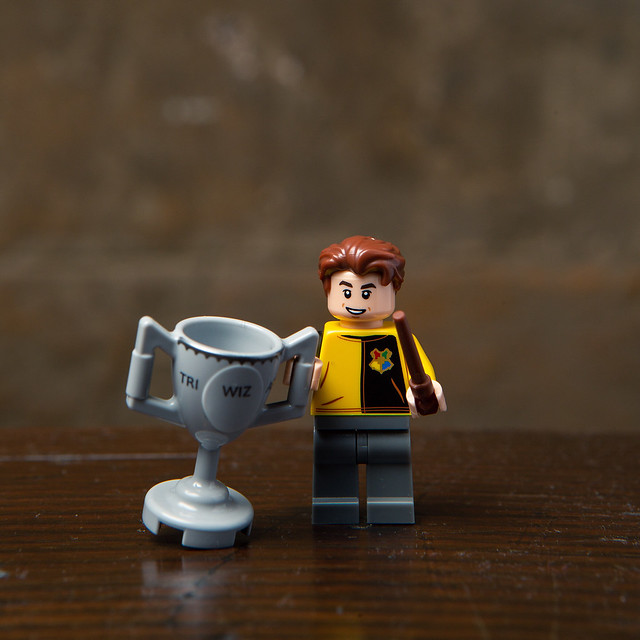 這裡的西追採用了《哈利波特—火盃的考驗》中參賽的造型,搭配帥哥專用髮型零件,女粉絲必入手啊:D 配件除了魔杖外,還有被偷換成港口鑰的獎盃。