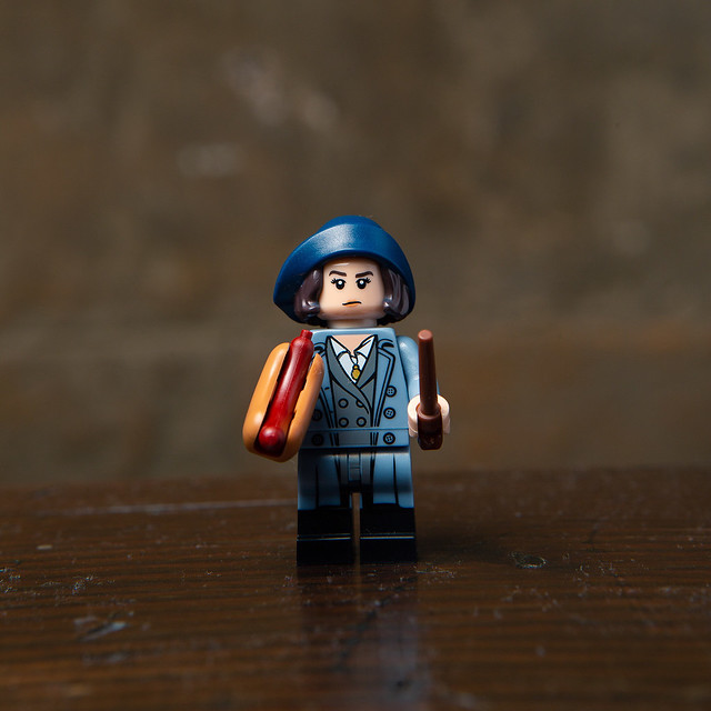 蒂娜是以電影初登場的造型來設計,與頭髮相連的帽子零件還原度非常高,由於是在追查,所以臉有點嚴肅,希望有雙表情~而且竟然連熱狗都有啊!