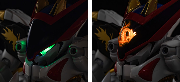 ▼ 頭部LED可選擇三種點燈模式:僅雙眼亮燈、僅頭部龍紋亮燈、雙眼龍紋同時亮燈。