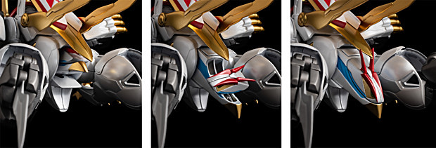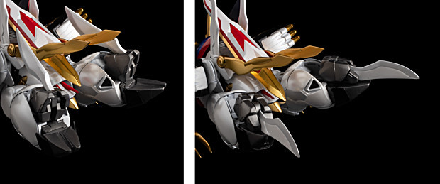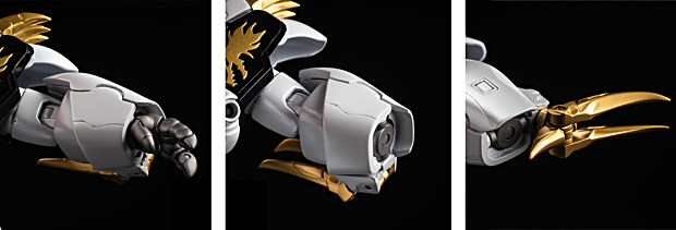 ▼ 手掌直接收納進前臂、兩腳變為雙翼,頭部則從跨下直接展開,嘴巴更能張開伸出施放「鳳雷波」的砲管!