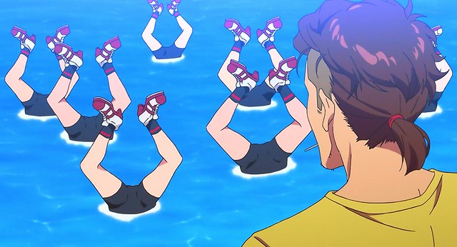 ▼ 《新世紀福音戰士》第 9 話中就出現初號機、貳號機到插在水裡的爆笑畫面,搭配真嗣與明日香的鬥嘴,舒緩了嚴肅的劇情。