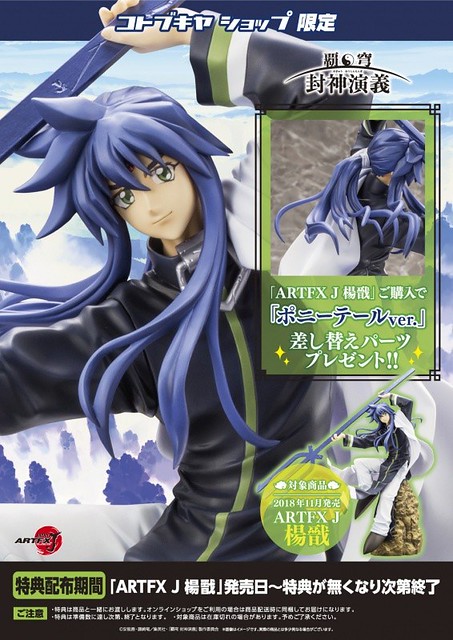 隨著大人氣漫畫由《封神演義》推出動畫重製版,日本壽屋玩具公司(KOTOBUKIYA)發行,打造日本動漫畫、遊戲角色精緻立體作品的「ARTFX J」系列,之前發表了新版動畫的新作「太公望」之後,將繼續推出在商品化人氣投票前段班手持著三尖刀的「楊戩(楊ゼン)」,官網近日公開其作品宣傳照片以及販售資訊。