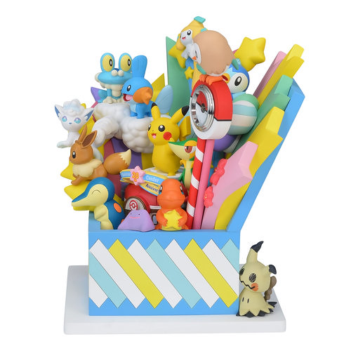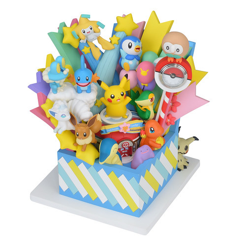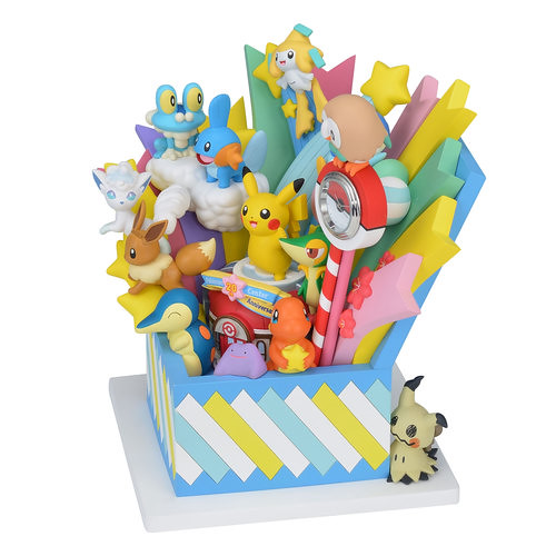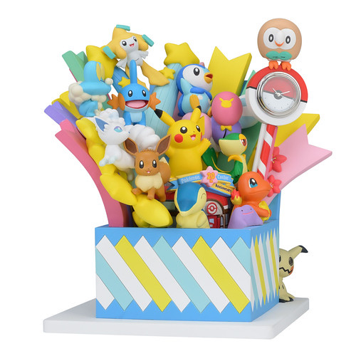 「Pokémon Center 20週年紀念時鐘」以寶可夢們從禮物箱中驚喜彈出的原創設計製作,登場的寶可夢從關都地區的皮卡丘、小火龍到阿羅拉地區的謎擬Q、木木梟,來自 1~7 世代的各個地區也象徵了在日本各個區域設置店舖的 Pokémon Center。五顏六色的光芒伴隨著花瓣、星星、雲朵竄出,中央更有掛上 20 週年紀念彩帶的寶可夢中心,整體的氣氛非常歡樂啊!什麼?你說這是一款時鐘!?差點忘了,時鐘的部份就在木木梟腳下的精靈球上喔XDD
