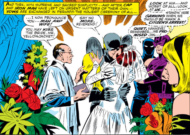 隨後洛基控制了浩克企圖攻擊自己的哥哥雷神索爾,而浩克的小夥伴里克打算呼叫驚奇四超人來幫忙,結果訊號卻傳送到鋼鐵人、蟻人與黃蜂女那裡,這件事讓五人決定效法驚奇四超人組成一個團隊,其中黃蜂女更是想出要替無法伸張的正義來復仇的想法,於是團隊就採用了「復仇者聯盟」這個名字。後來漢克開始忙於英雄和科學實驗疏於珍妮特的感受,這讓珍妮特為了讓他吃醋,開始對索爾說一些比較挑逗的話~