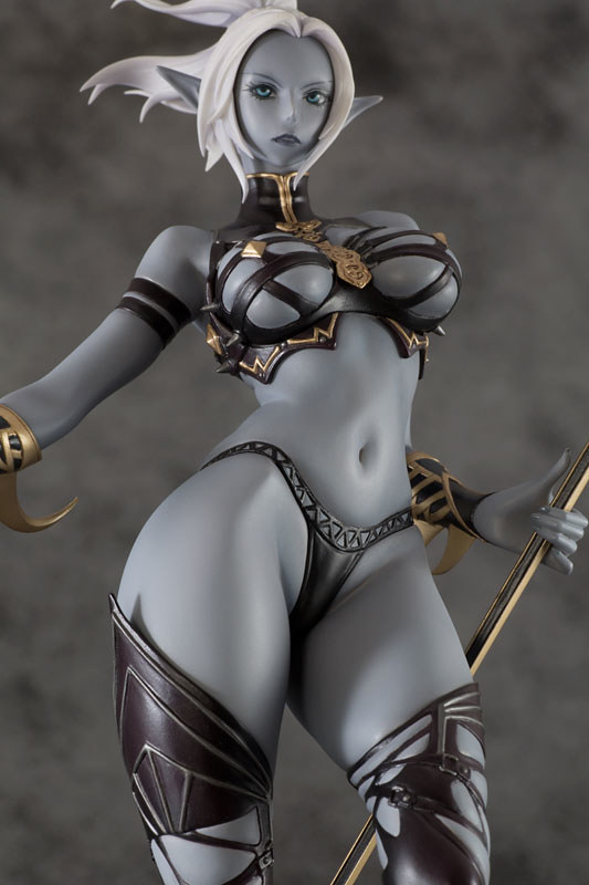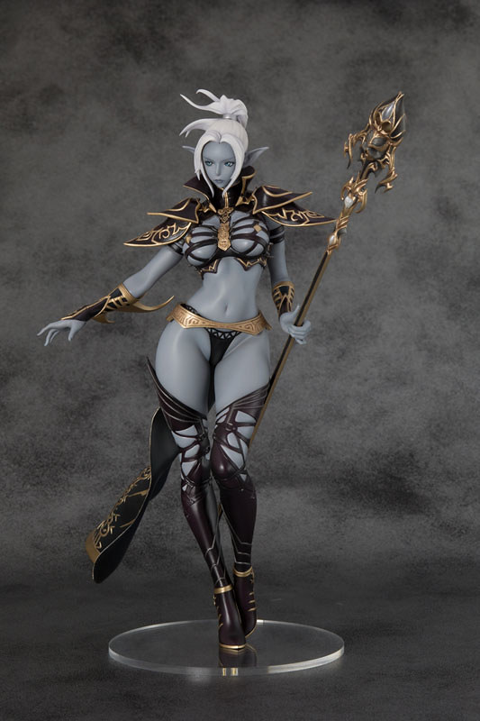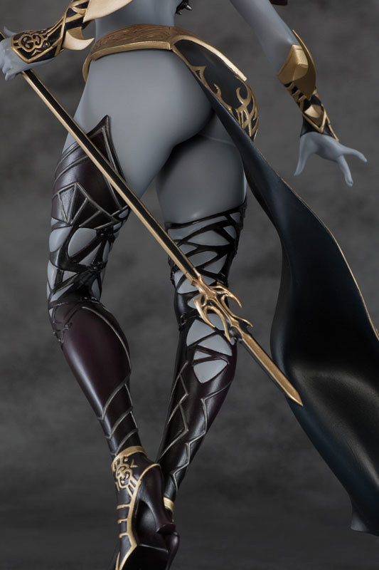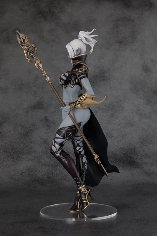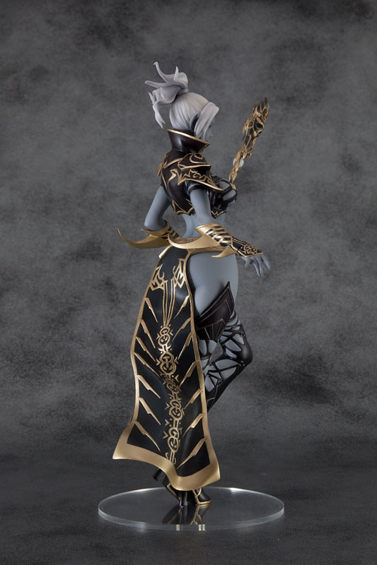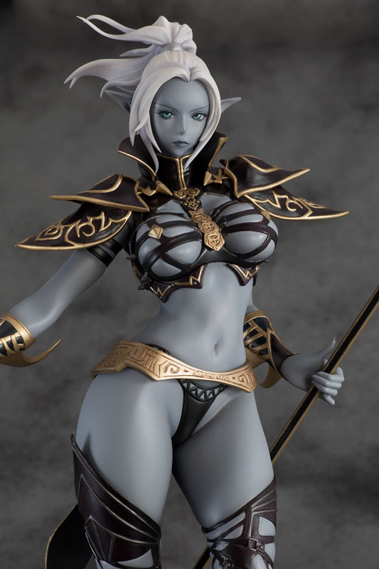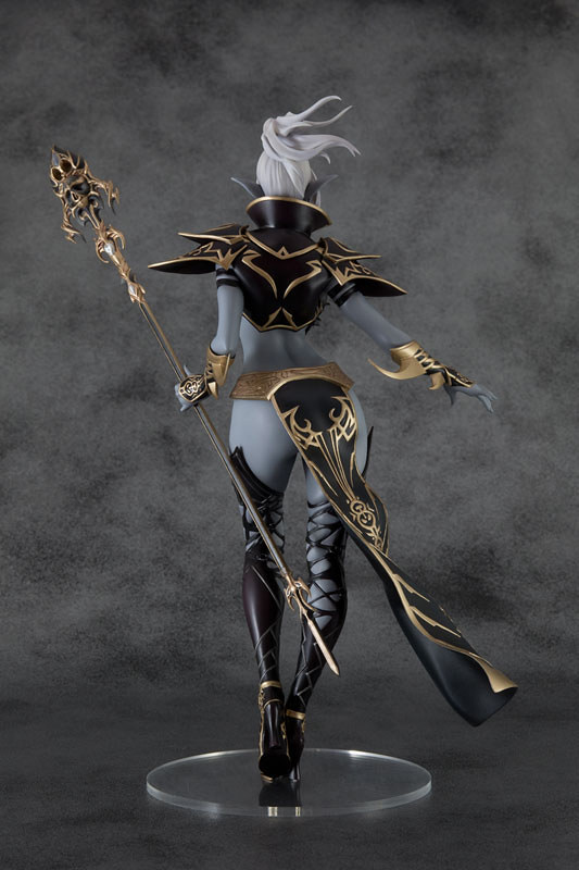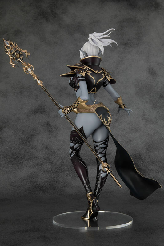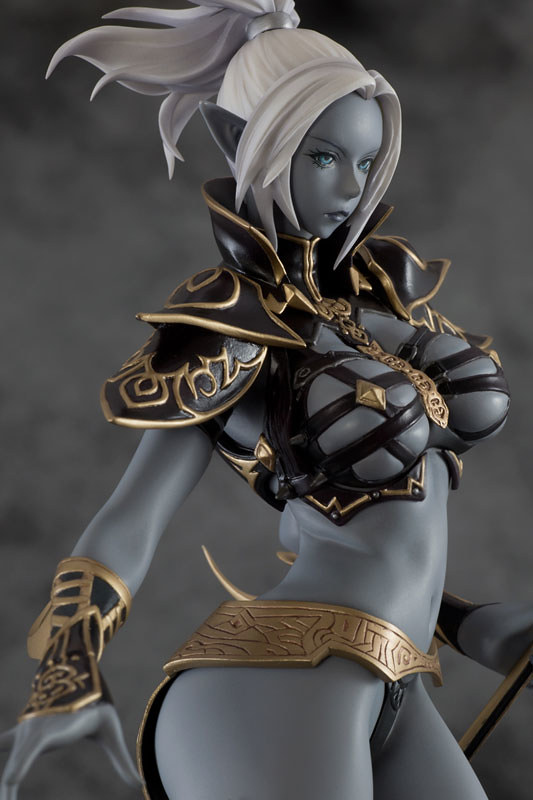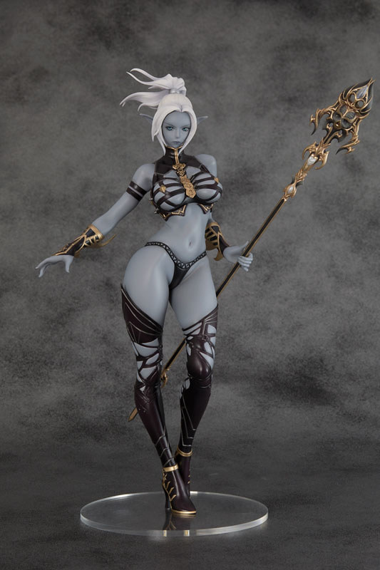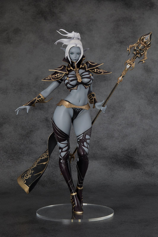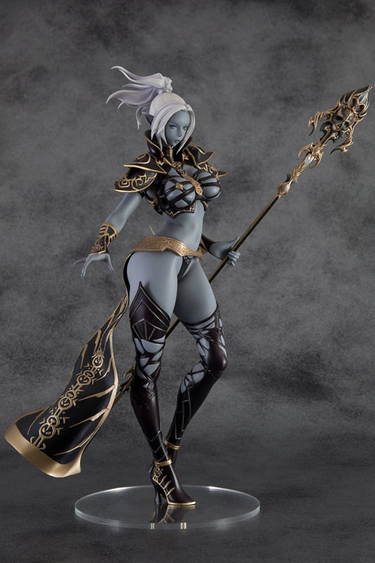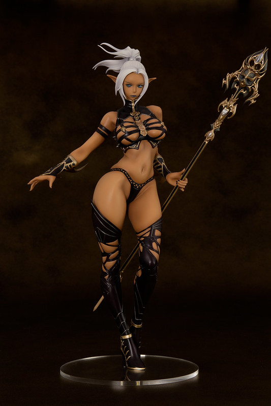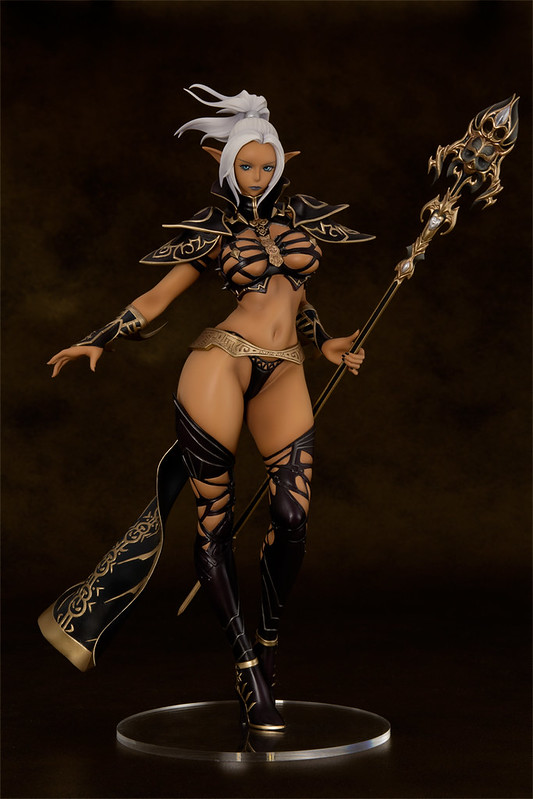 「黑暗精靈 1/7比例模型」交由日本知名原型師石長櫻子(植物少女園)擔任原型製作,展現充滿個人特色的纖細修長身形與凝聚情感的五官,同時也還原了遊戲中黑暗精靈豐滿的身材與性感的穿著,肌膚的肌肉造型與充滿彈性的質感相當細膩。手中則握有極為精密的「邪靈魔杖」,配合飄動的馬尾與裙襬也是相當帥氣。另外披肩、臀部的裙襬是可以卸下的,能看見更多背肌與臀部的出色細節。