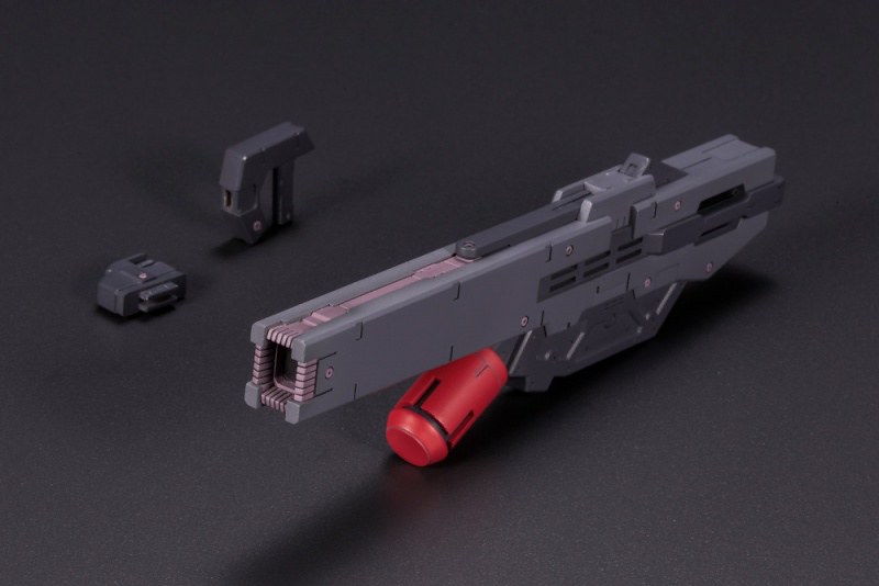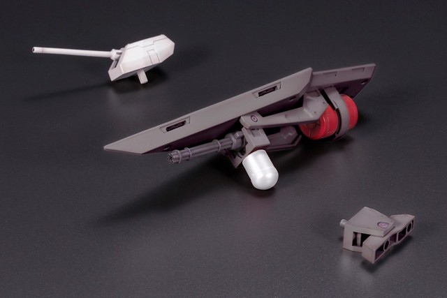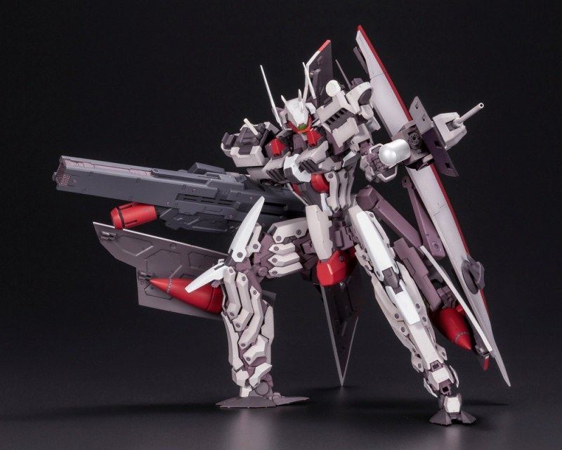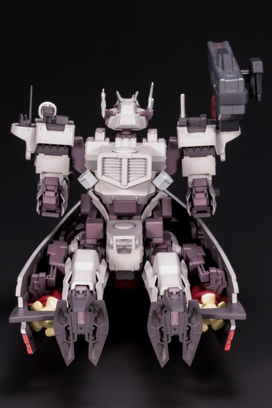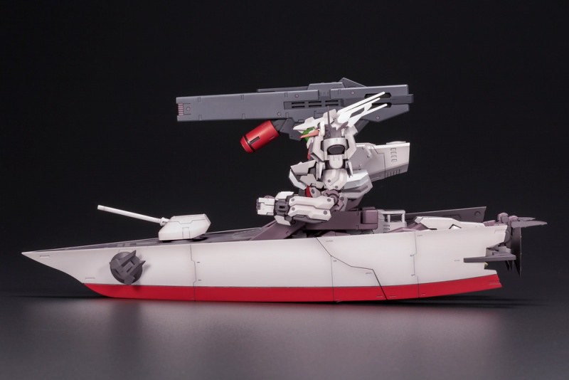 「FRAME ARMS 金剛」套件使用新型的 Renewal ver. 骨架製作,不僅可動更為向上,還能在不使用替換零件的情況下,完全變形為艦艇型態。武裝部份則收錄「光束火箭炮」、「單裝速射砲」、「機關砲」、「錨」等,透過機各處的 3mm 共通規則孔軸,也可與「Frame Arms」機體或同為壽屋發行的「M.S.G」、「HEXA GEAR」等組裝模型商品互換零件。