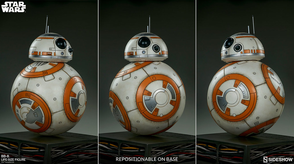 初次登場於《STAR WARS:原力覺醒》的BB-8 是屬於BB 系列的宇宙航太維修機器人,頭部呈現與R2-D2 相似的半圓形,使用大型的球狀機身來移動,快速逃跑的時候相當地可愛!在外觀上是以白色為主調,以橘色、銀色點綴,還搭載天線、黑色的圓形鏡頭;在EP7 中,抵抗勢力的王牌駕駛員「波·戴姆倫」將尋找「路克·天行者」地圖的一部分託付給BB-8,在歷經一段大冒險後,BB-8 的地圖和R2-D2 的地圖總算結合,這才定位到路克·天行者的所在位置。