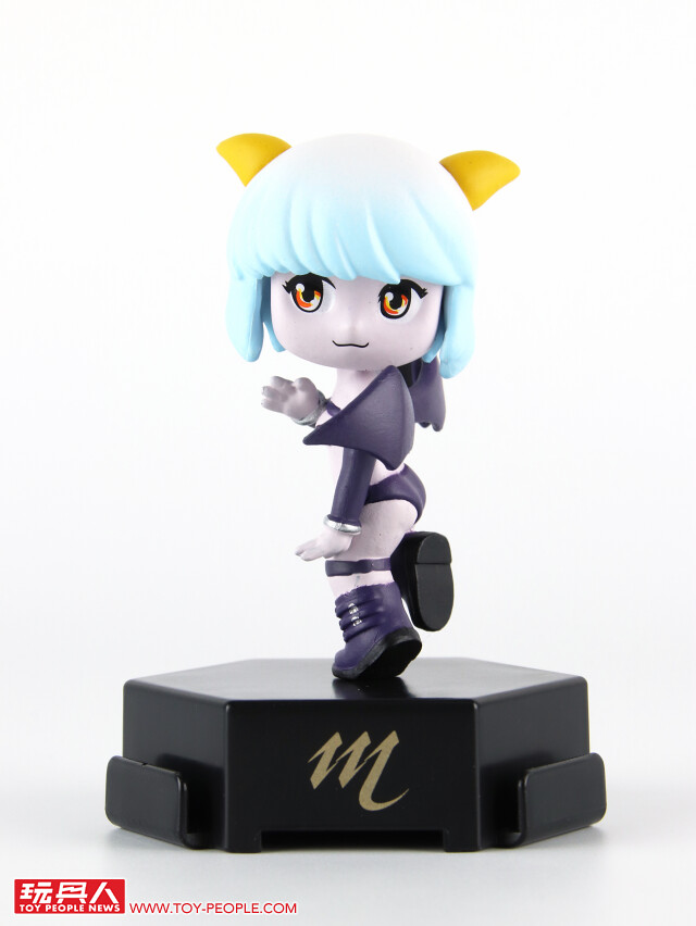 第一隻的思克巴頭髮有著漂亮的藍、白間層色,以及金黃色的角,炯炯有神的大眼搭配背上的小惡魔翅膀實在很可愛呢~由於是俏皮地單腳站立姿勢,所以思克巴是這六款中,唯一需要搭配底座才可以站立起來的角色。
