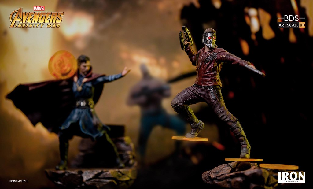在公開了「德克斯」、「奇異博士」之後,巴西知名雕像廠牌Iron Studios 旗下的Battle Diorama 系列「BDS Art Scale」再度發表來自《復仇者聯盟3:無限之戰》、在泰坦星上與薩諾斯決戰的英雄新作,「星爵」(Star-Lord)1/10 比例決鬥場景雕像預計將於2019年第一季發貨!!