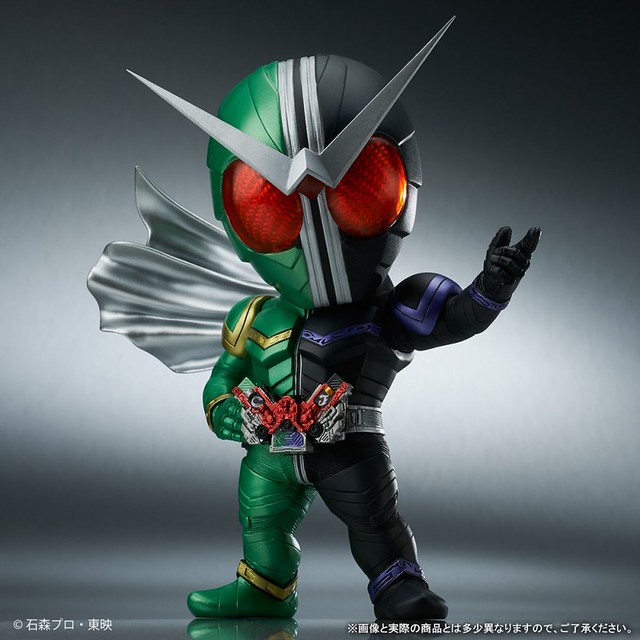 一樣也是以約2.5頭身的Q版本比例來呈現,在其造型服裝的褶皺和腰帶細節等等都精彩再現,讓喜愛的玩具人可以享受將喜愛的騎士濃縮縮小到手掌大小的尺寸魅力。另外於頭部面罩複眼部份配置有Led燈的發光設計,此作預計於PREMIUM BANDAI線上商店與X-PLUS TOYS的少年RIC線上商店兩個通路上限定販售,喜歡《假面騎士W》系列的玩具人可以參考一下。
