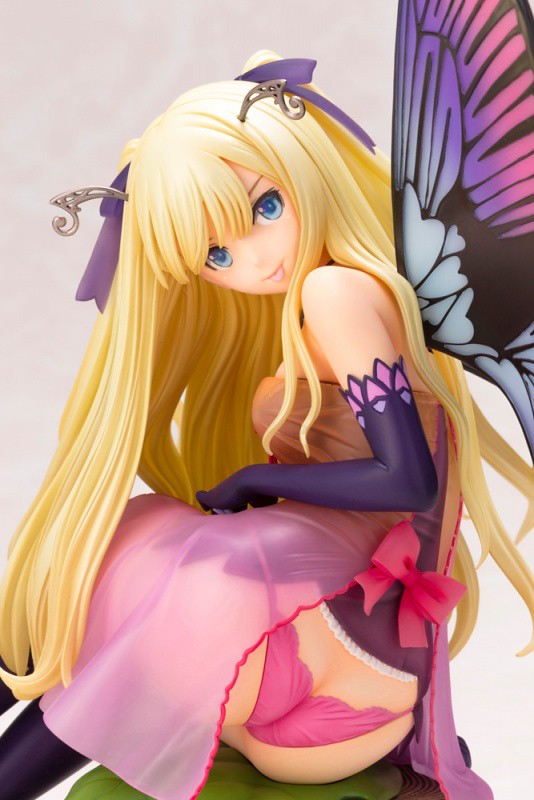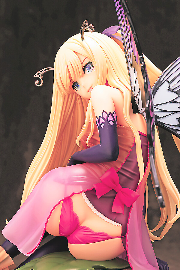 「紫陽花的妖精 安娜貝兒 1/6比例模型」和原畫相同強調美麗的背部、臀部曲線,臉型、色彩都相當還原。安娜貝兒調皮地吐出舌頭,展現了小惡魔般的性格,美麗的金髮也隨著她的回眸灑落。薄紗服裝使用透明材質製作,白皙的肌膚朦朧可見,看到這裡就已經被安娜貝兒的美貌吸引啦~不過最重要的還是這塊特別強調的「臀部」呀!整個曲線都和原畫一樣渾圓飽滿,皺摺、深溝也都徹底重現,十分SEXY!
