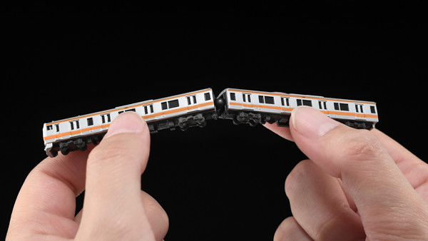 看到這裡一定很疑惑,那個「figma」的要素在哪裡呢?就在車廂與車廂間的連結器!這裡的連結器採用了一般用在 figma 手掌關節的零件,尺寸極小但可動出色,可呈現 E233 系電車轉彎時優美的曲線。