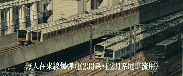 ▼ 電影《正宗哥吉拉》中的也曾使用E233系・E231系電車改造「無人在來線爆彈」攻擊哥吉拉。