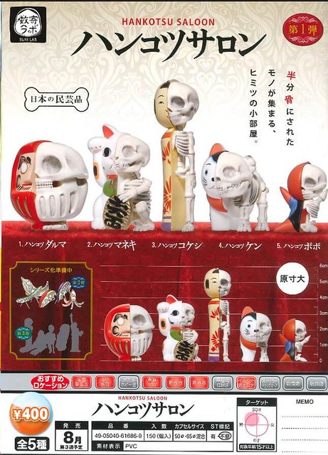 專門推出各式有趣題材轉蛋作品的EPOCH (エポック)品牌,這次將以相當特殊的"壞運氣系列(数奇ラボ)"來推出奇趣味的「反骨民俗藝品(ハンコツサロン)」(名稱暫譯)。在日本配合著地域文化和環境所製作的民藝道具,這些東西不僅為生活帶來便利,也能美化生活,在日常生活當中,可以握在手中的民藝道具,都蘊藏了工匠們的智慧,同時也展現著工藝與文化等等,這次將日本的民俗藝品都施以頗面露出骨骼的特殊設計。