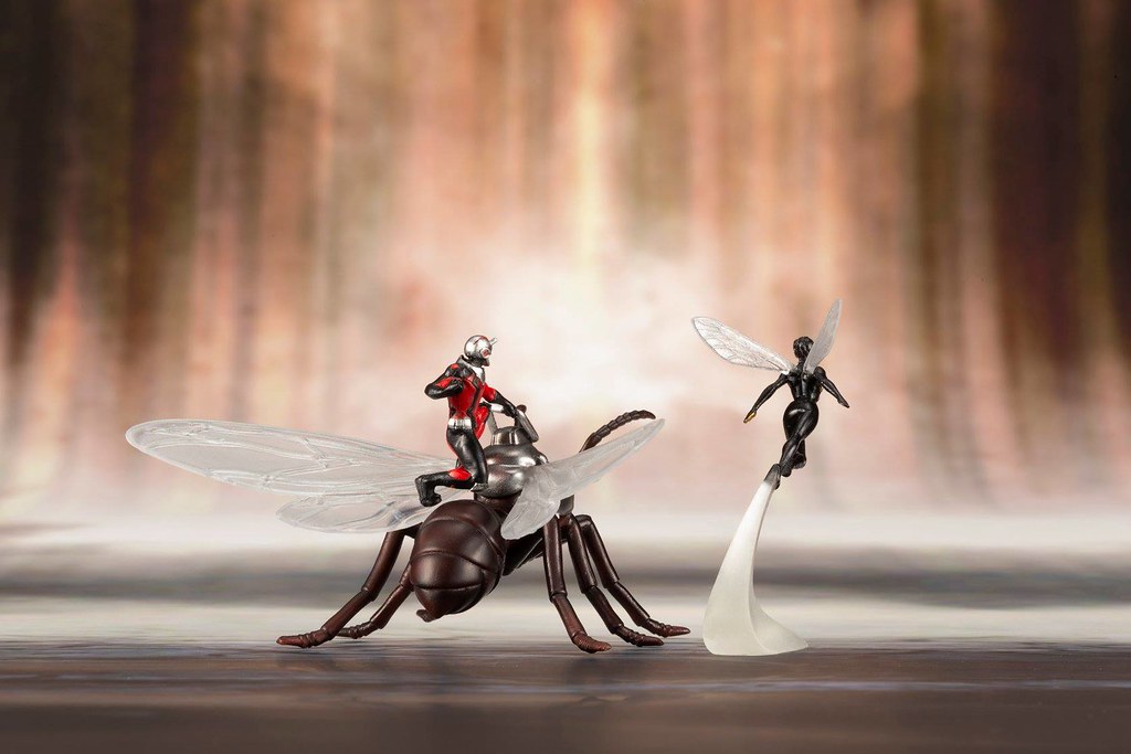 「ARTFX+ 蟻人與黃蜂女」將兩人在漫畫中的戰衣精緻重現,蟻人戴著具有觸角的復古風頭盔,而黃蜂女則是俐落短髮的造型,大蟻人擺出帥氣的備戰姿態,全身的肌肉線條被細膩地形塑,戰衣、頭盔的銀色部分施以帶有厚重感的金屬色塗裝,縮小的兩人各自呈現出極具張力的動作,駕駛著螞蟻的蟻人、展翅飛翔的黃蜂女都十分細緻,螞蟻的身體細節也忠實再現,尤其在六隻腳和觸角上一節一節的構造極具生物感,半透明的翅膀也刻劃出血管紋路,小小的蟻人、黃蜂女可以放在家裡的任何一個角落展示,感覺超有趣的!