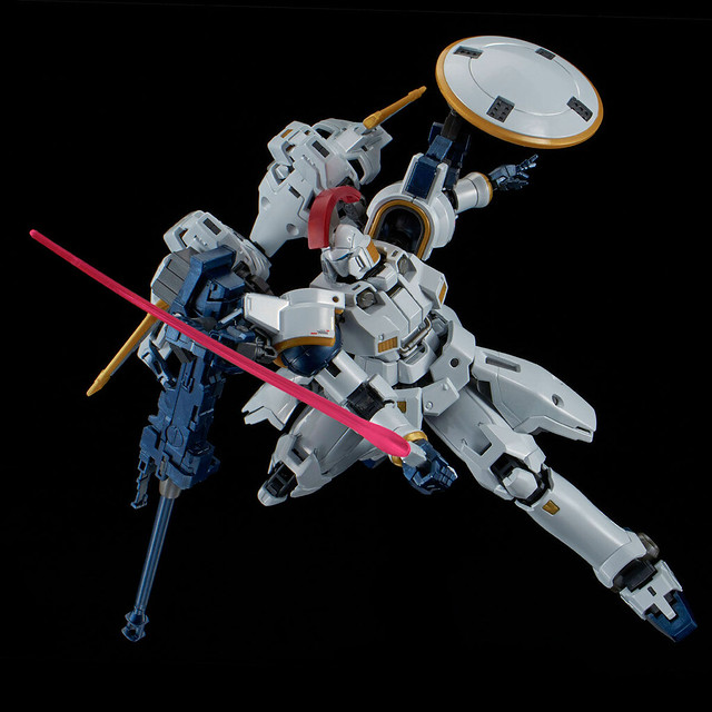 「托爾吉斯EW [鈦合金電鍍版]」以今年推出的 RG 一般版套件為基礎,全身套件施以鈦合金質感的多種成形色彩,白色裝甲經過電鍍加工後呈現閃亮的金屬光澤,骨架、武裝零件也使用了金屬色成形,具備閃亮閃亮的金屬顆粒感。