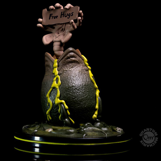 「Q-Fig 異形抱臉體」高約8.5 公分,以破天荒的設計巧思將恐怖、致命的抱臉體,與相當暖心的活動「Free Hugs」的精神結合在一起!真的是超衝擊啊~雖然從流出綠色汁液的異形蛋裡冒出來,但這個抱臉體的心態可能有點不一樣,牠彷彿和藹可親地拿著「Free Hugs」的木牌,只想要跟願意敞開心胸靠近牠、不計前嫌的人類和樂融融地抱抱!所以,即使是最恐怖的外星生物,可能都需要你的關懷~各位玩具人,你的決定是?!