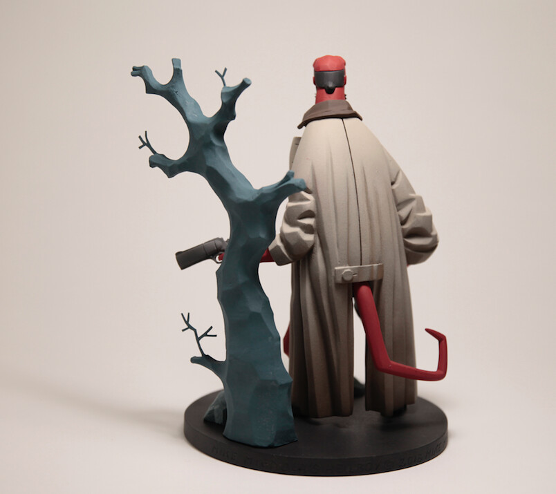 背面的大衣也細膩地刻畫出皺摺,巧妙上色所營造出的鮮明對比,高度表現出漫畫中特殊的光影效果,而岩石、樹幹塊狀的線條造型更讓人能完整體會Hellboy 漫畫的藝術風格。這款作品全球限量500 體,有興趣的玩具人可以寫信到[email protected] 訂購喔~