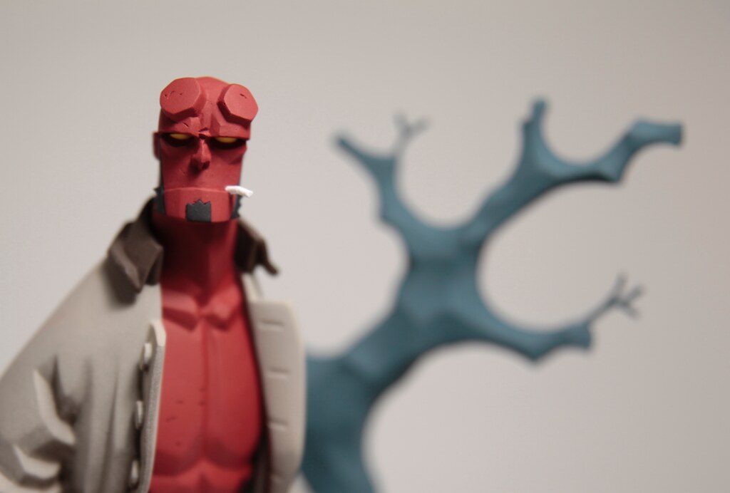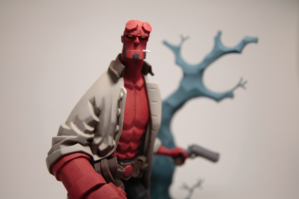 這次的作品同樣是由知名原型師Alban Ficat 根據Mike Mignola 的原畫,以合成樹脂(Resin)的材質所打造,本作全高約22.5 公分,不同於「第二彈」長出犄角的超霸氣外觀,本次回歸了「第一彈」呈現犄角折斷、經過打磨之後的造型,在腹肌、偵探大衣的陰影塗裝讓本作更有立體感,毀滅右腕也極具魄力!從Hellboy 的神色、配件、色調.....等都最大限度地重現Mike Mignola 大師筆下的設計。
