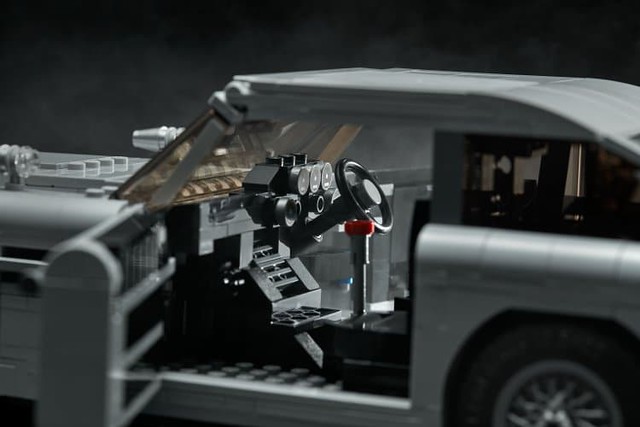 「樂高奧斯頓馬丁DB5」以大量的灰色平滑磚拼搭,細緻地勾勒出實車優雅的外觀,輪圈、車頭真的都很美啊~前後的防撞桿都使用帶有光澤的銀色零件組成,除了像平常的樂高車,引擎蓋、車門可以打開之外,就如同在電影中讓我們驚呼連連一般,許多暗藏的機關等著你來發掘!包含超經典的彈射座椅、後頭的防彈裝置、能轉動變換車號的車牌、暗藏的追蹤面板、車門內的電話、車頭燈下的機關槍......等等,實在太好玩啦~相信在堆砌的過程中也能帶給你許多樂趣,終於可以體驗當特務的感覺惹~(掩面