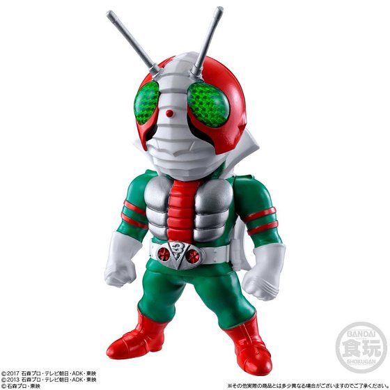 《假面騎士鎧武》當中的「假面騎士鎧武 勝鬨鎧甲(仮面ライダー鎧武 カチドキアームズ)」,《假面騎士555》劇集所登場的「假面騎士Faiz 爆發型態(仮面ライダーファイズ ブラスターフォーム)」以及「假面騎士 Delta(仮面ライダーデルタ)」,還有《假面騎士V3》劇中的主人翁「假面騎士V3」等等加一款隱藏版本共約有六款不同種類的腳色人物可以收集,喜愛《假面騎士》系列的玩具人可以參考一下歐!