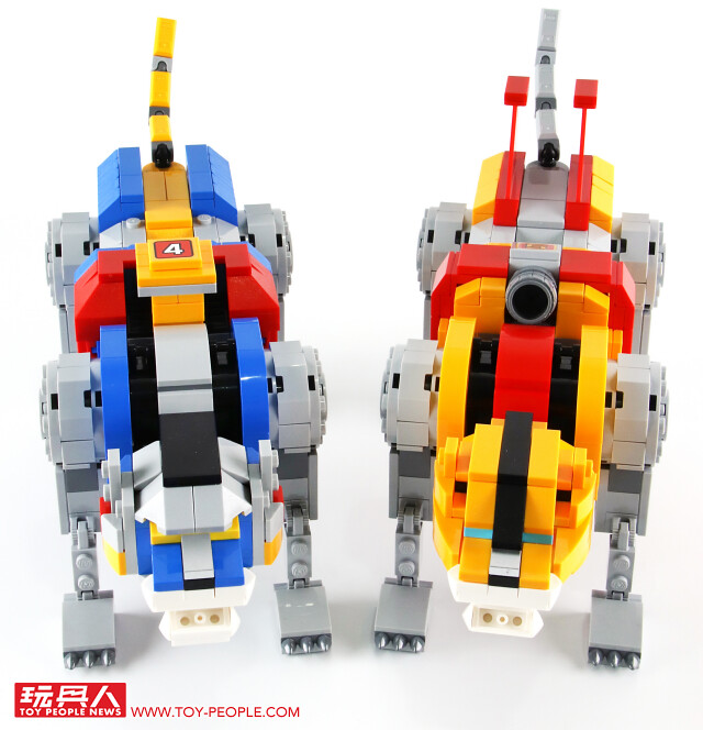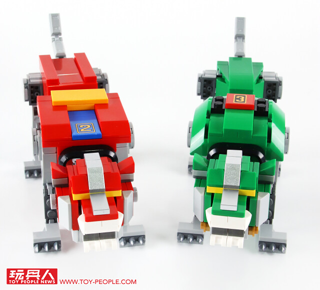 ▼雖然組成手臂的紅、綠獅跟組成腿部的黃、藍獅的堆砌結構差不多,但仍能發現在身體、頭不具備不同的設計。