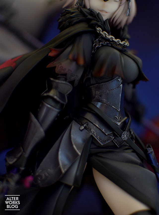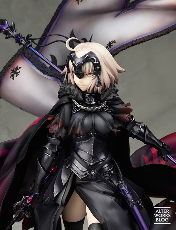 「Avenger/聖女貞德〔Alter〕 1/7比例模型」以遊戲中第一再臨的插畫為基礎製作,重現了黑貞德桀驁不馴的冷笑,讓人感受的「龍之魔女」的憎恨。整體細節比原畫更為精細,選用的膚色同樣相當白皙,與其對比的漆黑鎧甲則使用金屬色塗裝,並經過舊化處理產生斑駁的質感。