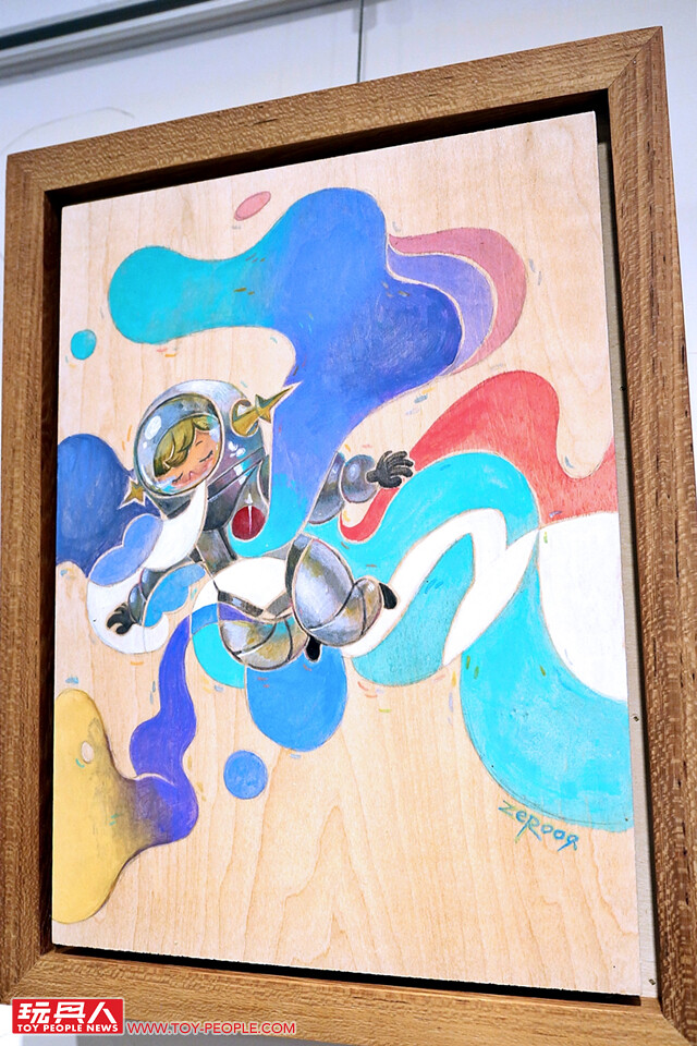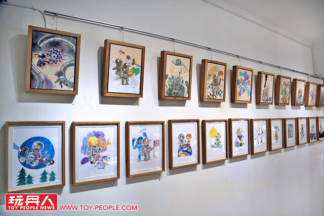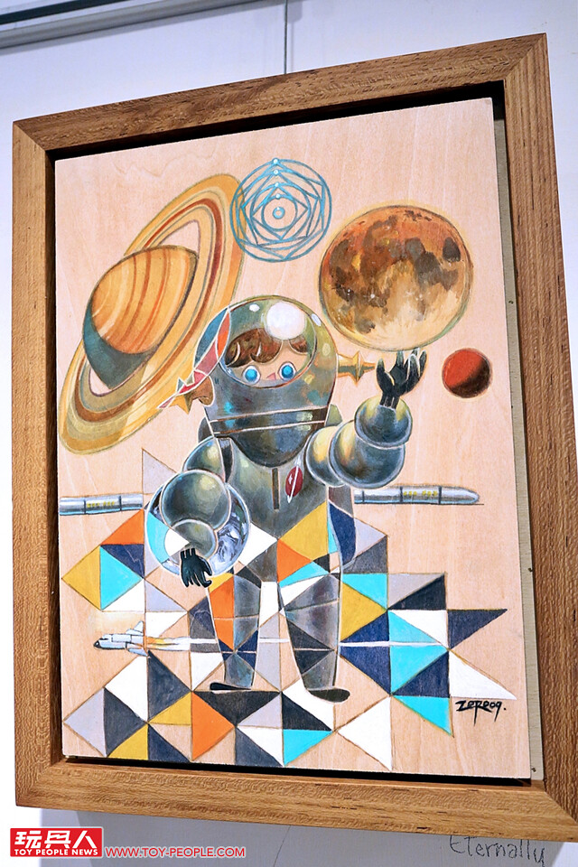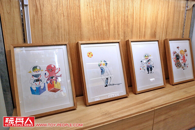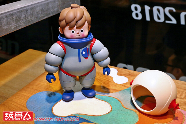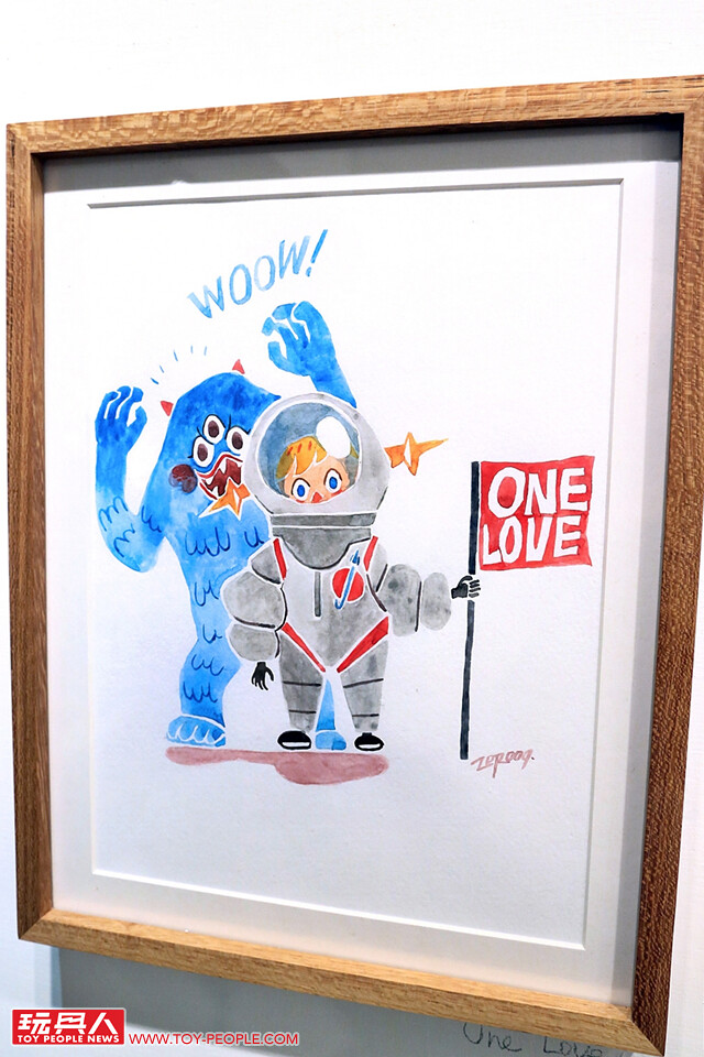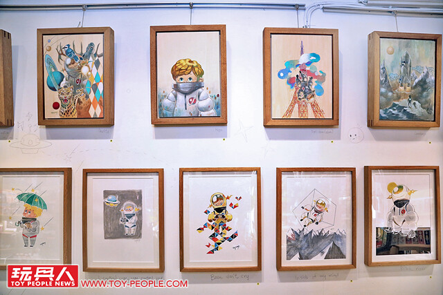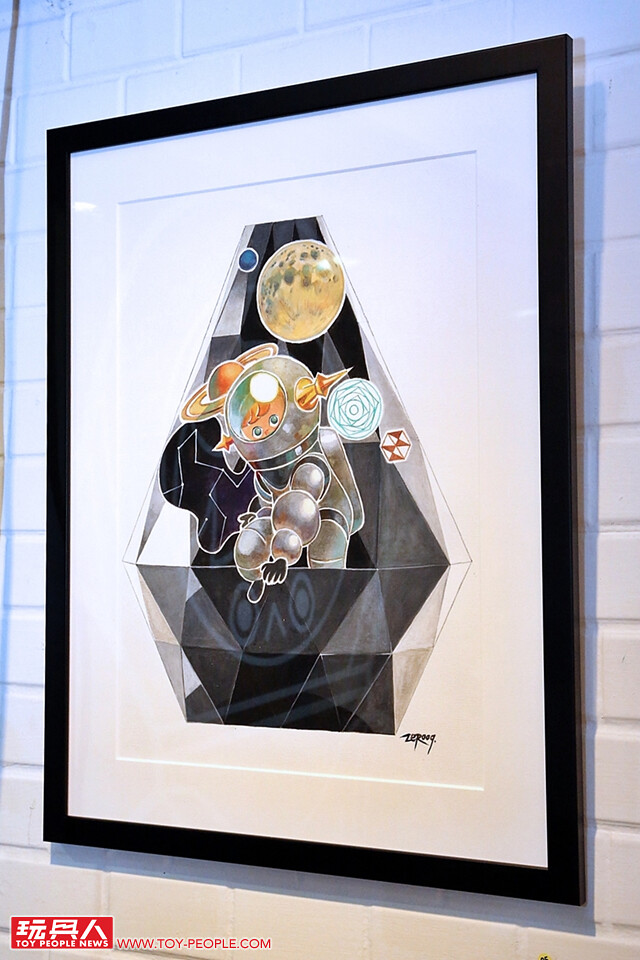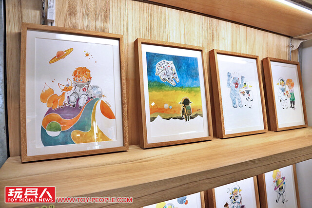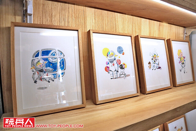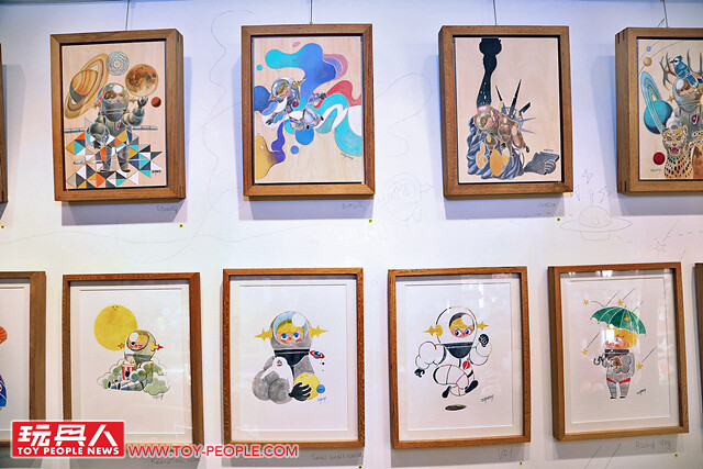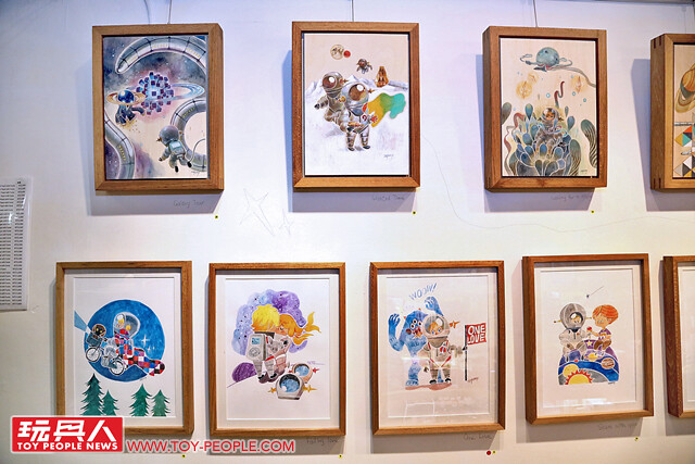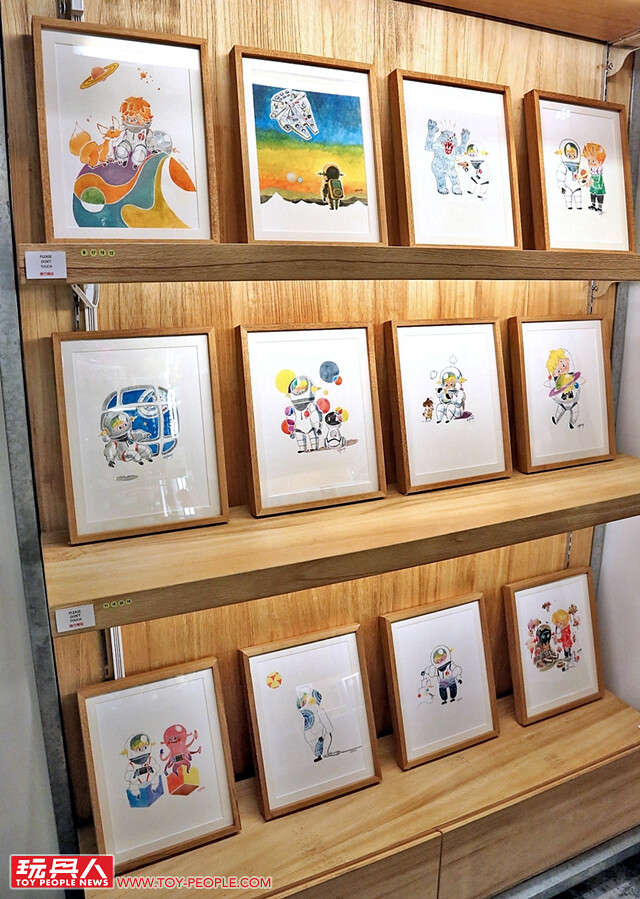 這次,009 老師以經典名曲"Fly Me to the Moon"為主題,在眾多充滿幻想色彩的畫作中都能看見老師處於想像、現實之間的特殊風格,而且還有向經典電影《E.T.》、《星際大戰》....等致敬的作品,獨特的溫暖筆觸只能在現場才能細細體會,小編真的大力推薦玩具人們來現場欣賞歐!另一個重頭戲則是全新的Unio,這款由How2work 所製作的太空人不僅頭可以轉動,手、腳的每一個環節也都具備可動機構,一定超好玩的啊,可愛的外型令人完全抵擋不住他的魅力!