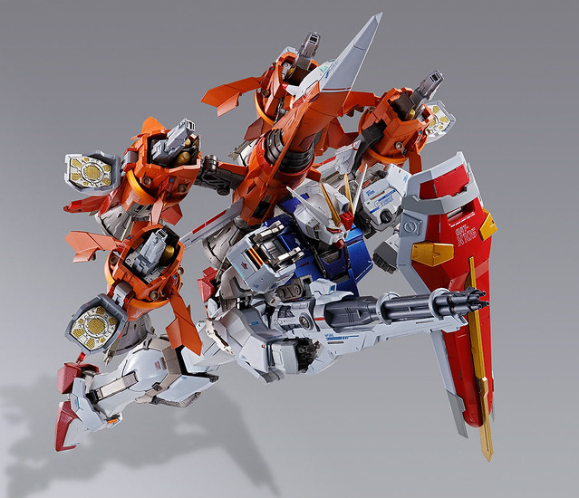 「METAL BUILD 砲筒型攻擊者」也具備與「METAL BUILD 攻擊鋼彈」合體的機能,除了像原作那樣將機身對折的合體方式外,這款 MB 也設計了將整個機身懸掛背部的原創合體機構。而砲筒型攻擊者最具特色的全方位攻擊也能透過纜線零件、專用台座徹底再現!