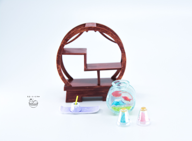 這位食玩的故事主人翁,不只有高雅的品茶器具,連家具都要很講究的有FUJI!