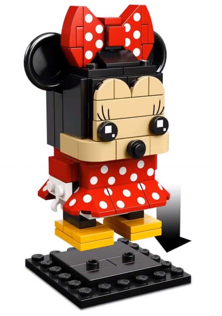 除了精彩的頭部造型外,兩人的雙腳都多堆砌出了兩層3×2 大小的長方形黃色底版,跟一般BrickHeadz 的角色相比擁有更多變化性,米奇的頭部雖然整體算是有稜有角的方形,但在頭頂加上了弧形磚修飾,紅底白點的褲子也以印刷磚來呈現;而米妮則有更多豐富的造型,除了頭上的點點蝴蝶結、點點連身洋裝外,超翹的睫毛太有趣了~這兩隻一定要收藏啊!