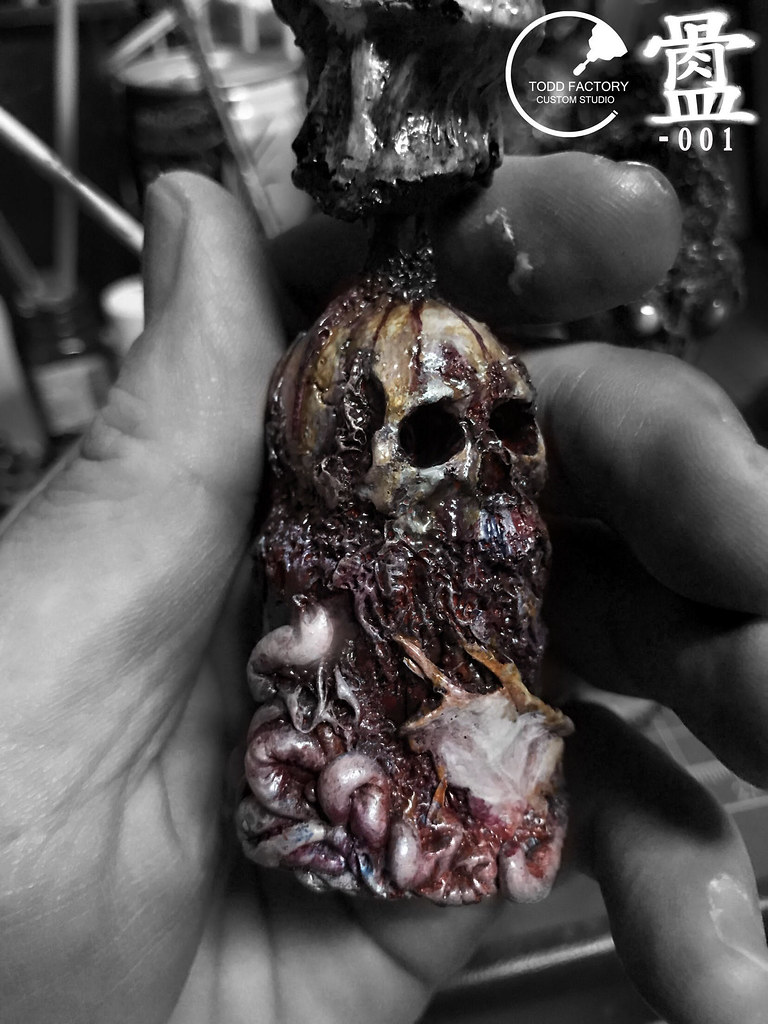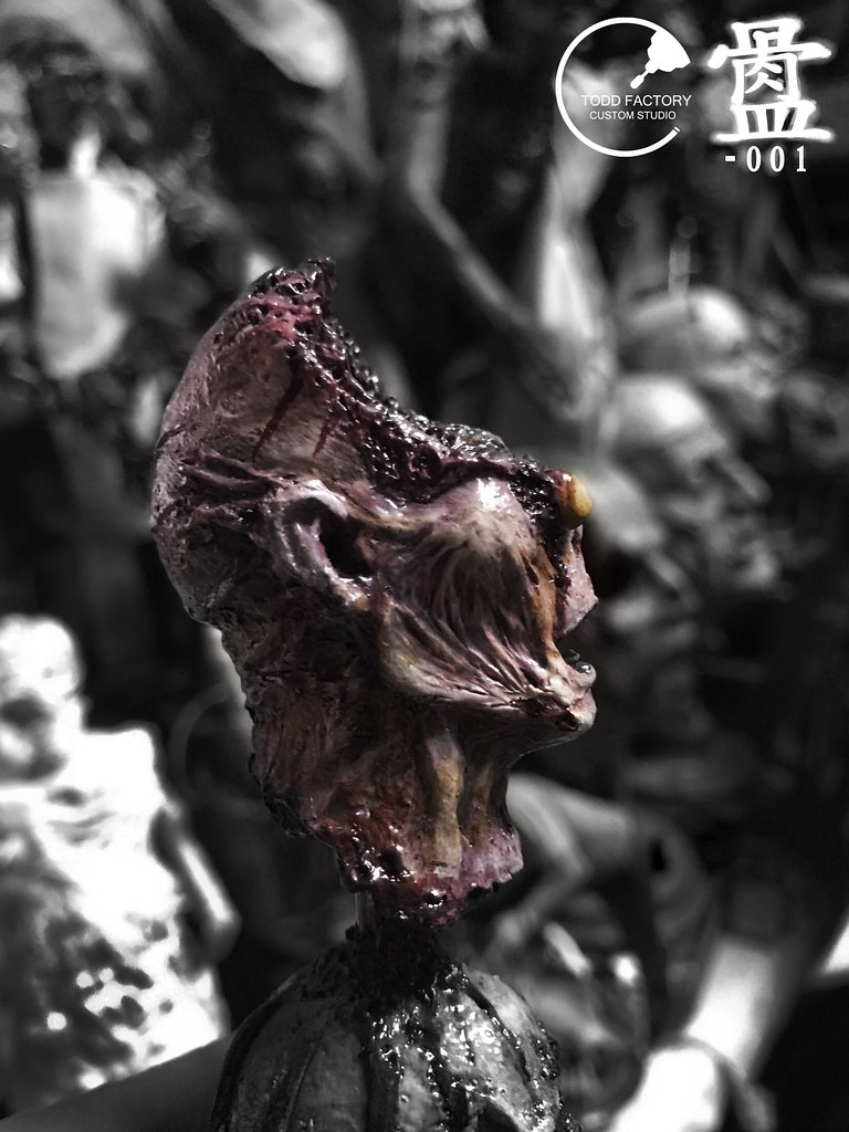 擅長打造恐怖場景配件,作品充滿黑暗、獵奇、血腥元素的陶德工廠工作室,在過去曾發表了「眼球糖模型」、「桶裝屍體系列」等精彩傑作,並受到全球1/6 比例人偶玩家、恐怖主題收藏家所青睞,這次帶來了全新的骨肉系列,「骨肉系列001 -BRAIN 腦殘」重鹹登場!!