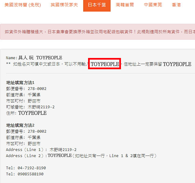 ▼ 在國外網站購買商品時,務必依照官網提供的地址填寫,並且注意每個帳號的代號(紅框處)都要填入地址,你的貨物才不會寄到別人家喔!畢竟也有同名同姓的可能性呢。