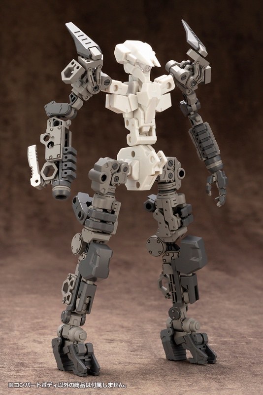 全新商品「Convert Body」是一款汎用性極高的素體套件,全身由如同工業製品般造型豐富的零件組成,透過通統一規格的 3mm 孔軸可自由分解.組合,或與其他同為壽物發行的 FRAME ARMS、FRAME AARMS GIRL、HEXA GEAR 等系列結合使用,可玩性相當多變!
