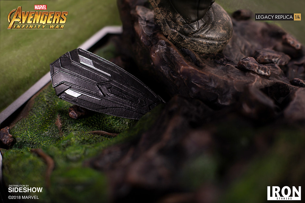 服裝的質地、金色護甲的重量感、沾染到靴子上泥土,都讓本作更具寫實感,以瓦甘達場景所設計的地台同樣打造出細緻的植被、岩石環境,另外,還附有美國隊長的「爪盾」可以搭配展示,實在太猛啦!!