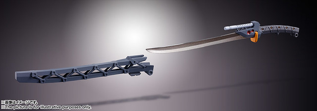 新設計的高振動粒子刀並不是收納於肩膀,而是在刀鞘之中,一樣能懸掛在腰部的武裝支架。