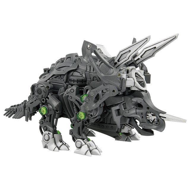 「ZW11 突擊三觭龍」是擅長用頭部三根角進行衝撞的三觭龍屬大型 ZOIDS,牠的裝甲擁有彈開敵人攻擊的強大防禦力,在「本能解放」後還能將藏於頭部的衝角瞬間彈出,使出強力的必殺技「力量衝擊」連續彈出兩次衝角擊穿對手。