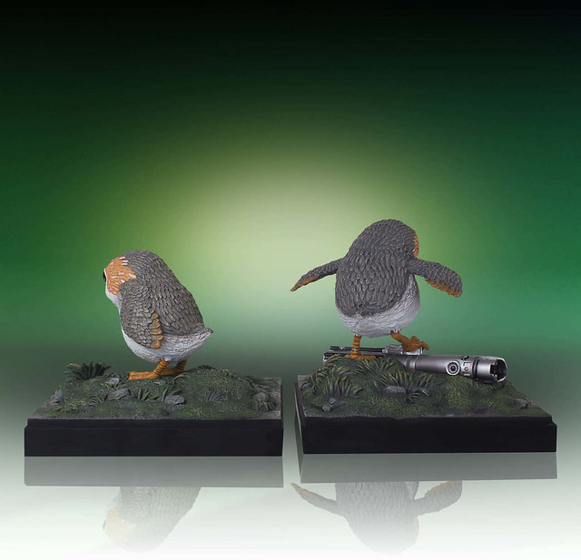「波波 書擋組」實在太可愛了!除了完整再現牠們肥肥的身形、圓滾滾的大眼睛外,皮膚表面的羽毛紋理也有細膩的刻畫,並以手工塗裝仔細地重現波波的毛色細節,底部則是以Ahch-To 星的環境來設計,使這款書擋的完整性再提升!其中一個還有路克隨手一丟的光劍柄,踩在上面的波波彷彿正在研究這是什麼東西,實在越看越療癒,就算不拿來當書擋,單純當擺飾也很可以!!