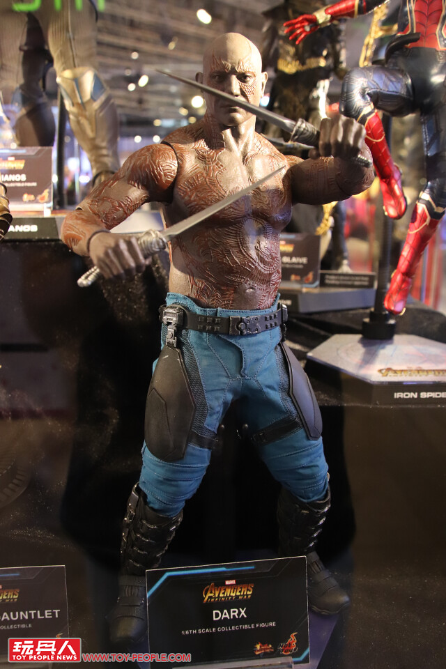 ▼接著就是目前Hot Toys 所開發的《復仇者聯盟3:無限之戰》所有角色陣容,酷寒戰士的手臂和頭雕都超讚~新登場的反派有Outrider 和亡刃。