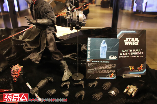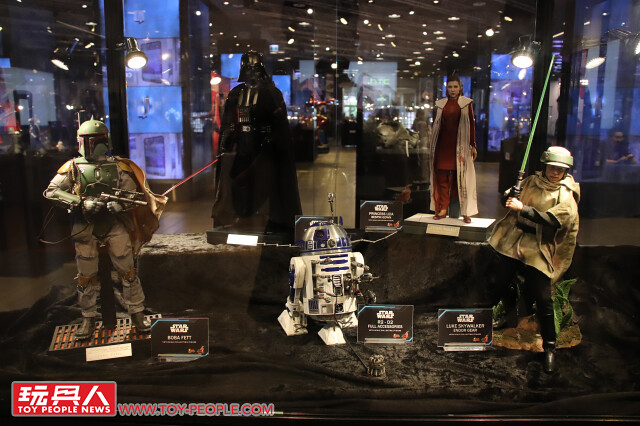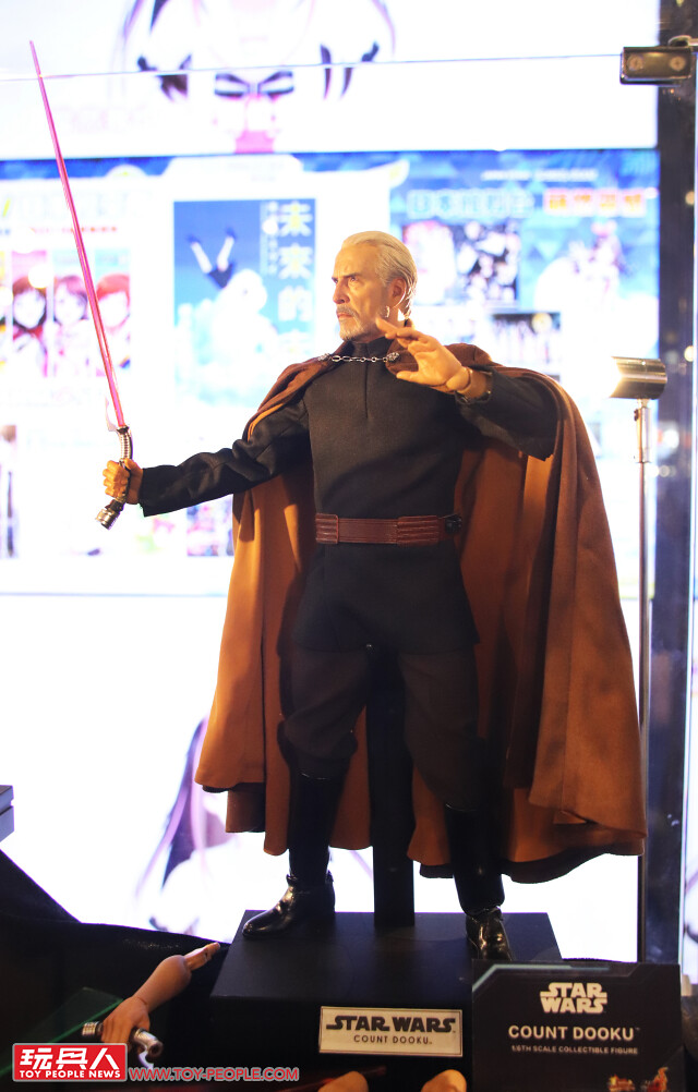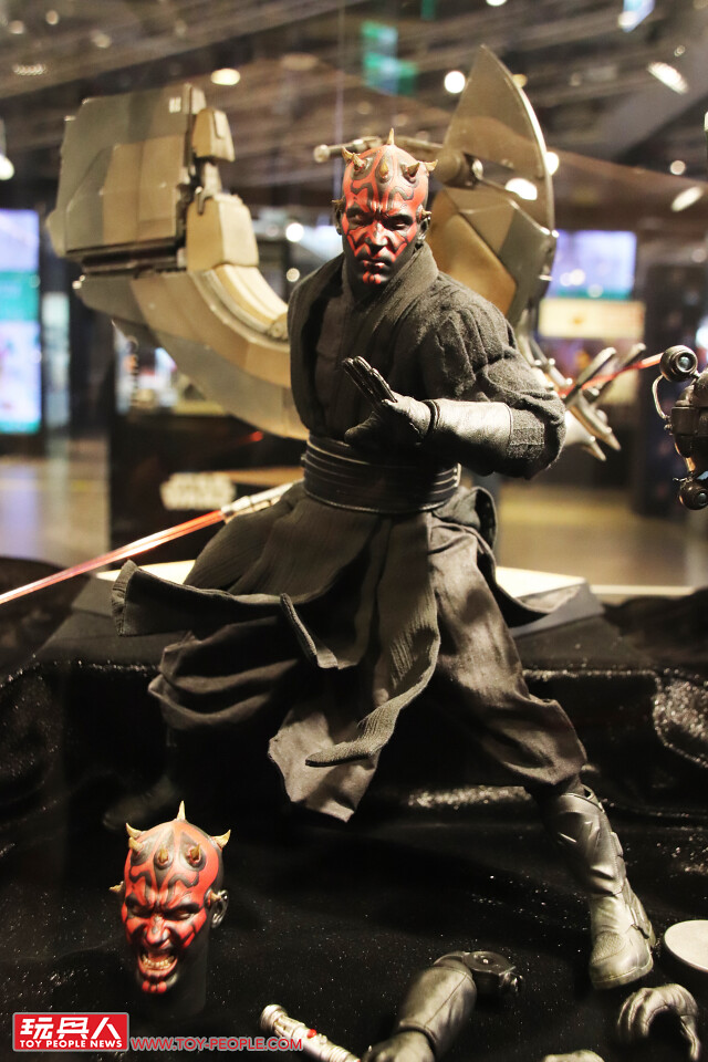 接下來是星戰區,除了有1/4 比例、以超豪華規格打造的黑武士「達斯·維德」之外,跟Sith Speeder 一起展出的「達斯·魔」,眼神超凶狠的魔化安納金,展開決鬥的尤達大師跟杜庫也非常精彩啊。